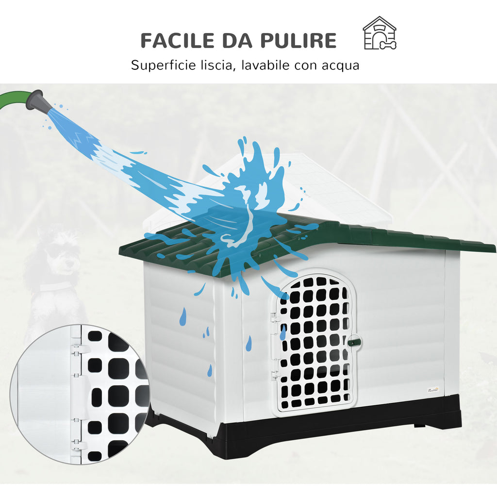 Niche pour Chien Petit Format 111x84x80 cm en Plastique Blanc et Vert