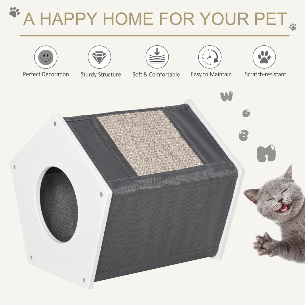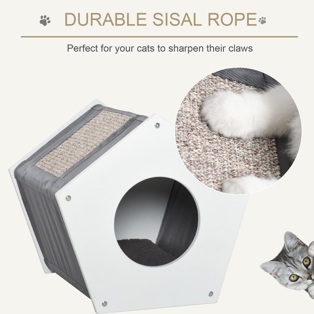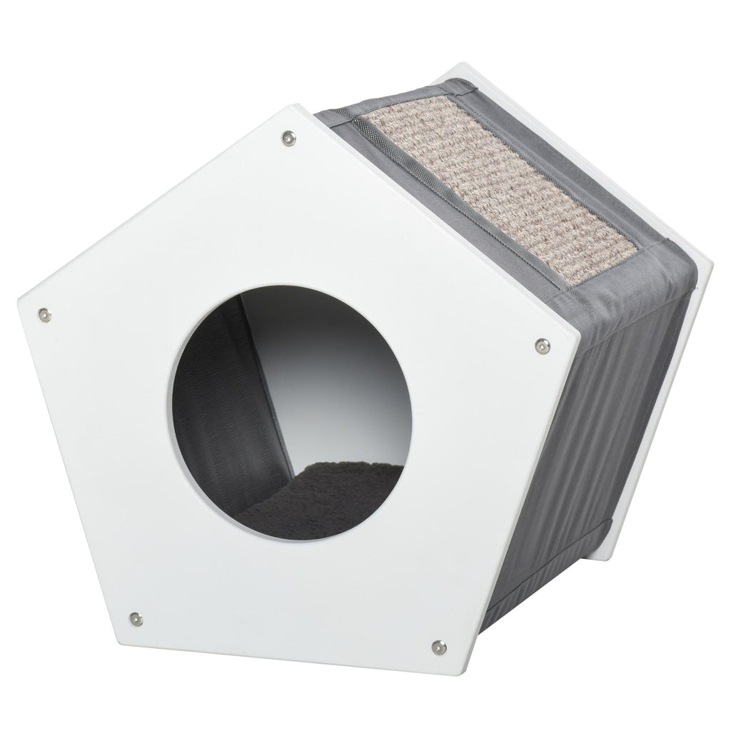 Laissez-vous tenter par l'instinct naturel de votre félin de se cacher et de se gratter avec cette maison pour chat. Grâce au rembourrage interne et à la structure fermée, les chats peuvent trouver un environnement confortable où ils se sentent en sécurité pour faire une sieste. Vos chats n'auront pas besoin d'aller loin pour aiguiser leurs griffes car la maison est équipée de griffoirs en sisal sur le toit. Offrez cette maison pour chat à vos petits amis, elle a un look simple et élégant qui complète parfaitement n'importe quelle pièce.