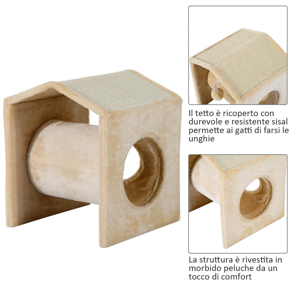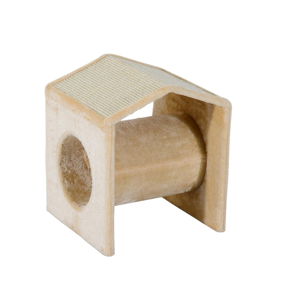 La structure recouverte de peluche douce donne une touche de confort tandis que le toit recouvert de sisal durable et résistant permet aux chats de se gratter les griffes.