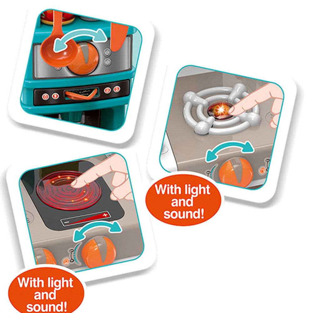 Cucina Giocattolo Bambini con Luci e Suoni 34 Accessori Gioco 87x78x29cm Azzurro
