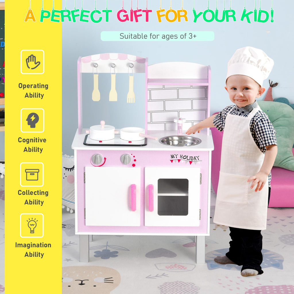 Cuisine Enfant 55x30x80 cm en Pin et MDF avec Accessoires Roses