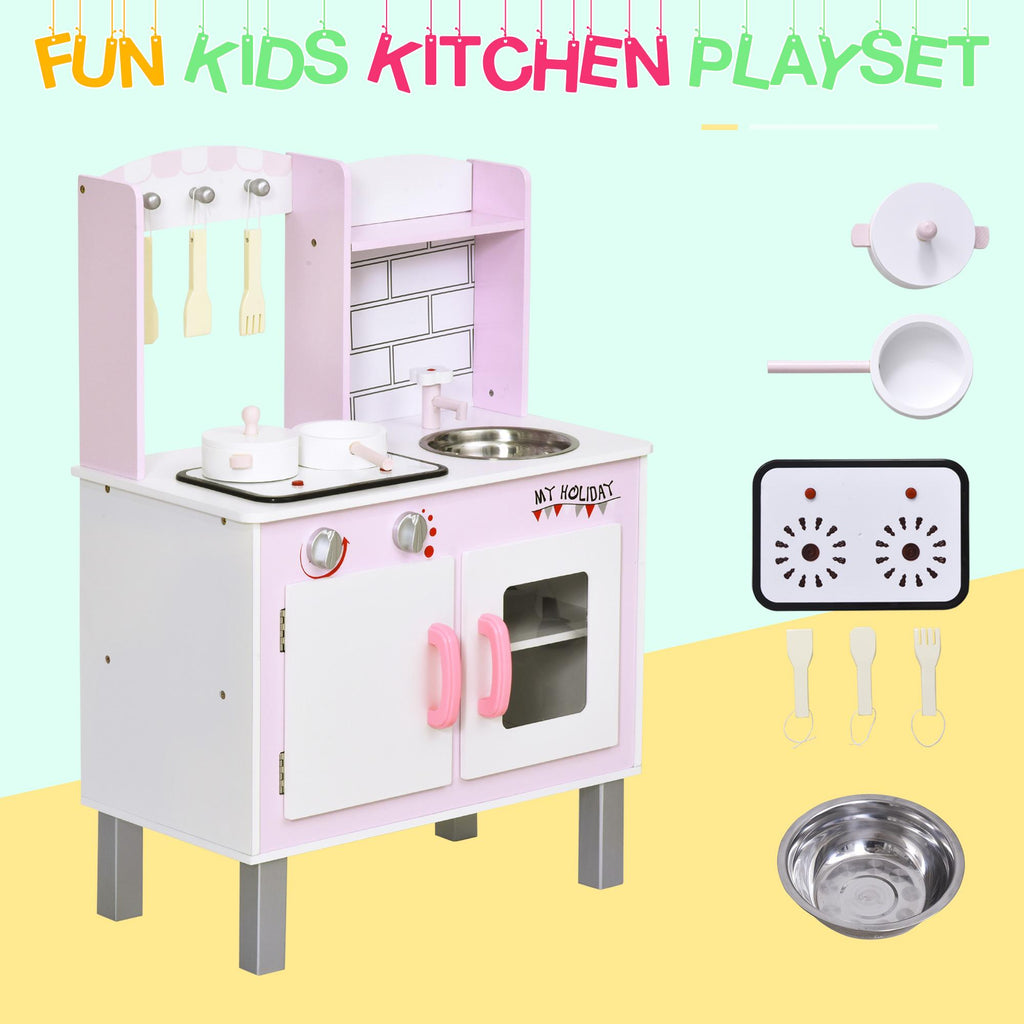 Cuisine jouet pour enfants 55x30x80 cm en pin et MDF avec accessoires roses