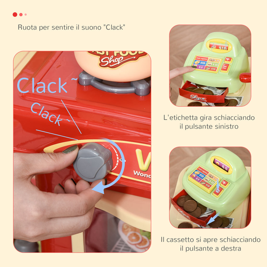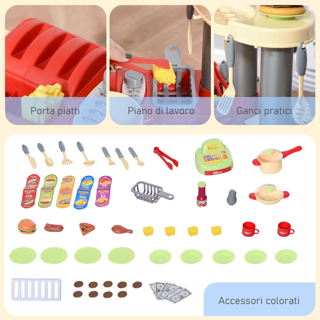 - ENSEMBLE COMPLET DE FAST FOOD : La cuisine jouet est livrée avec de nombreux accessoires, dont une caisse enregistreuse, de l'argent fictif, des menus, des ustensiles de cuisine et de la nourriture.
