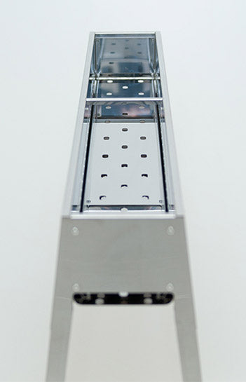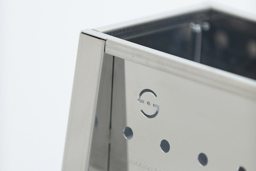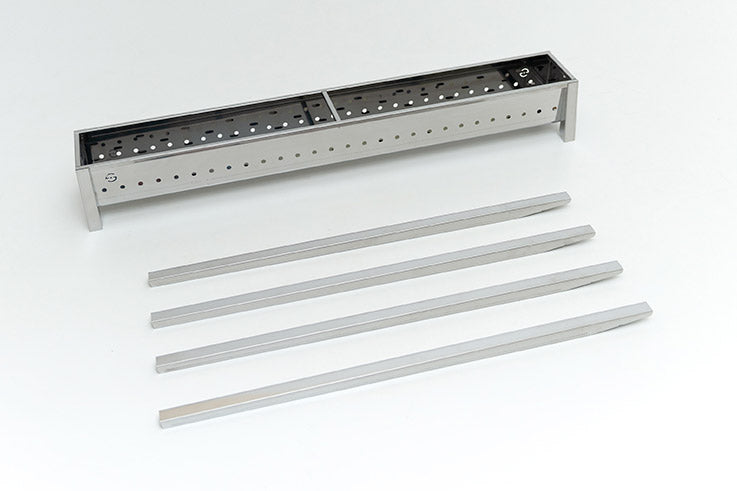 Le canal de cuisson Abruzzo Milano 100 Arrosticini est fabriqué en acier inoxydable avec finition miroir et se caractérise par un bord supérieur qui empêche le bâton de rôtissage de brûler. Il possède un double fond pour favoriser la circulation de l'air et faciliter l'élimination des cendres. Les parois avec profil anti-coupure sont perforées pour permettre une meilleure ventilation de l'air qui alimente les braises. le montage des pieds est simple et rapide, avec le système de couplage à baïonnette qui ne nécessite pas d'outils.