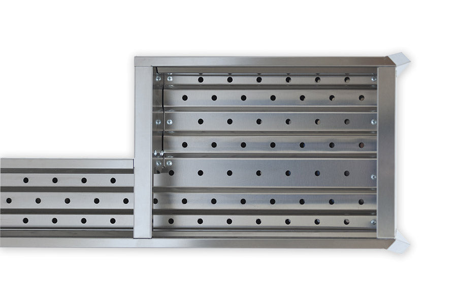 Cuisinière à arrosticini avec barbecue Miami Grill 1200+400 mesure 160 cm de long au total, dont 120 cm pour la cuisson des arrosticini et 40 cm pour le barbecue qui a une profondeur de 30 cm. Il permet de cuire environ 60 brochettes qui deviennent environ 80 avec l'accessoire kit brochettes pour Miami Grill et Etna Mini.