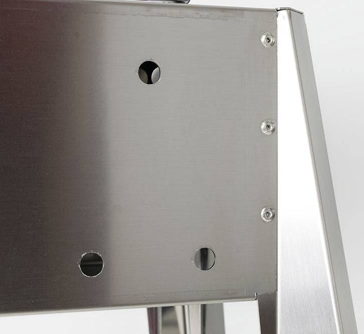 Profil anti-coupure : toutes les extrémités sont lissées, pliées et poncées pour assurer une sécurité maximale. L'assemblage des pieds est rapide et facile, le système de couplage à baïonnette ne nécessitant aucun outil. Facilement amovible, il peut être facilement rangé dans de petits espaces lorsqu'il n'est pas utilisé. Sans pieds, le cuiseur à brochettes peut être utilisé sur un plan de travail grâce aux pieds surélevés intégrés au corps central.