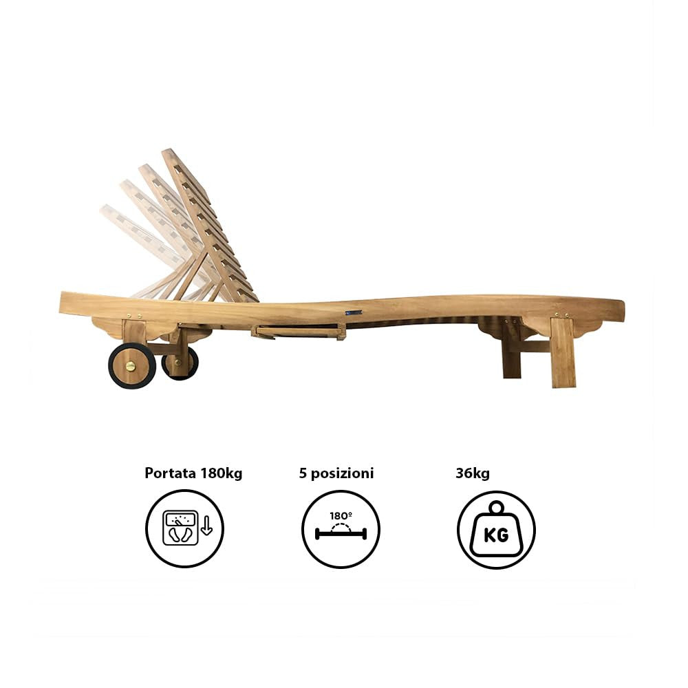 Lettino Prendisole Reclinabile Elafonisi 200x65x31,5 cm a Doghe in Legno Teak