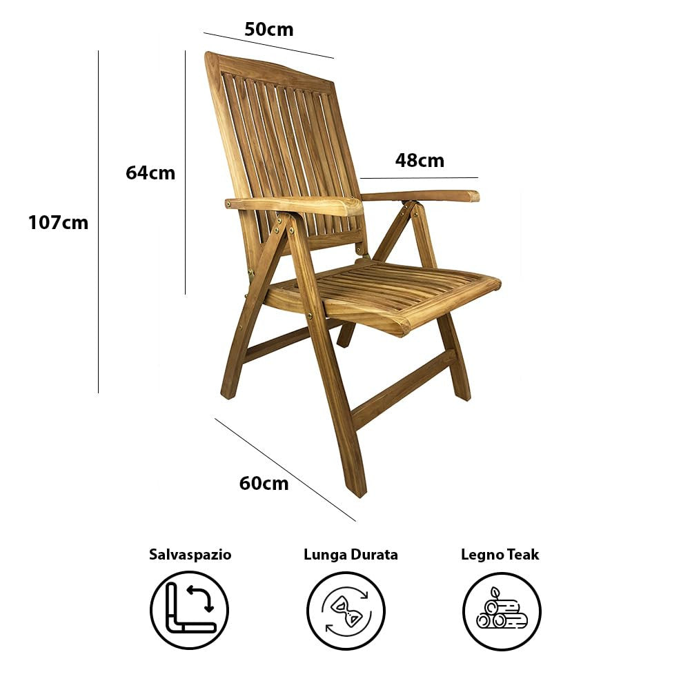 Sedia Pieghevole e Reclinabile con Braccioli Bali da Esterno in Teak