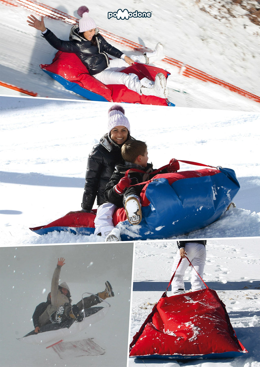 Plus grand en taille que son frère "Slittone", cet article permettra aux familles présentes dans vos parcs d'hiver de vivre des émotions uniques et en toute sécurité lors de leurs vacances à la neige. La glisse avec les traîneaux familiaux Pomodone allie expériences inoubliables et sécurité dans une seule solution.