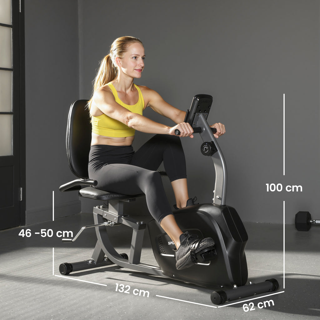 Cyclette da Casa Recumbent con 8 Livelli di Resistenza Magnetica Misurazione Pulsazioni Sellino Regolabile Nero
