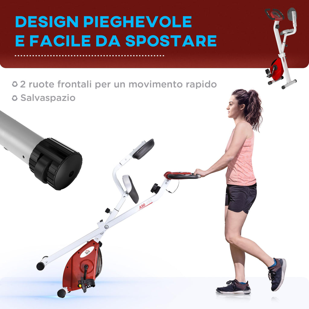 Vélo d'appartement magnétique pliable 43x97x109 cm avec écran LCD rouge