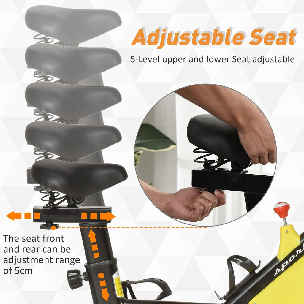 Vélo d'Appartement Spinning 50x100x101-113 cm avec Ecran LCD et Support Smartphone Jaune