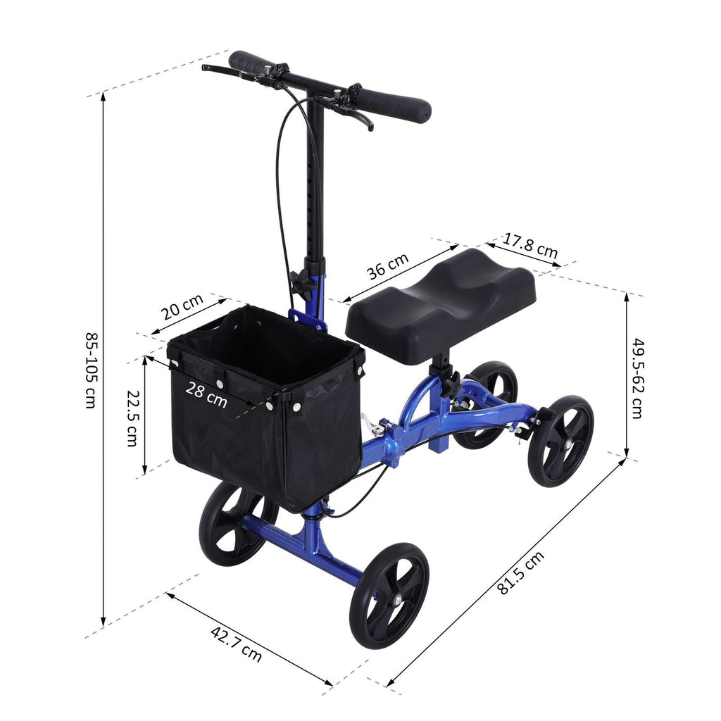 Déambulateur pliable pour aider les personnes à mobilité réduite, par exemple celles qui ont subi une blessure aux membres inférieurs. Robuste, grâce à la structure métallique, pliable et réglable en hauteur, le déambulateur est conçu pour offrir aux patients tout le soutien dont ils ont besoin pour mener à bien leurs activités quotidiennes en toute autonomie. Équipé de 4 roues, de 2 freins et d'un panier pratique, il est parfait pour rester actif, peut-être faire du shopping ou se promener.