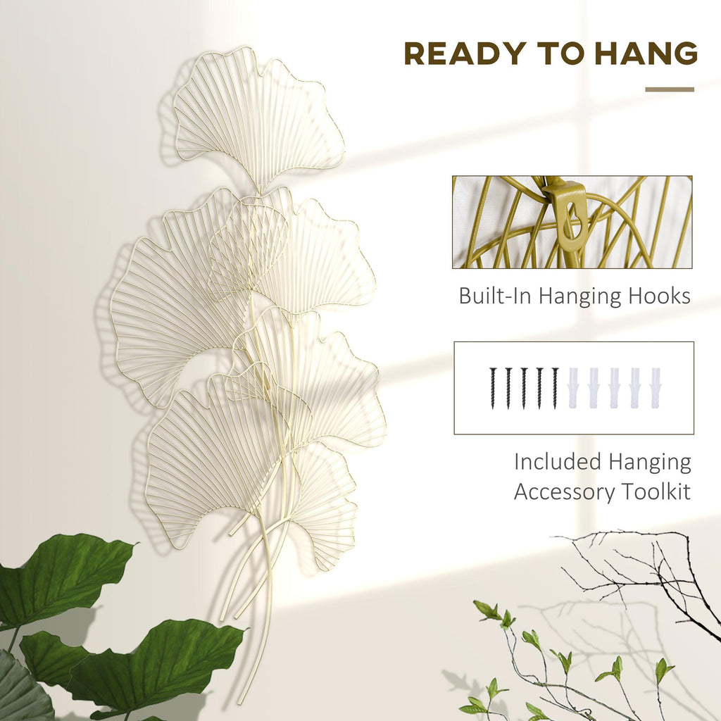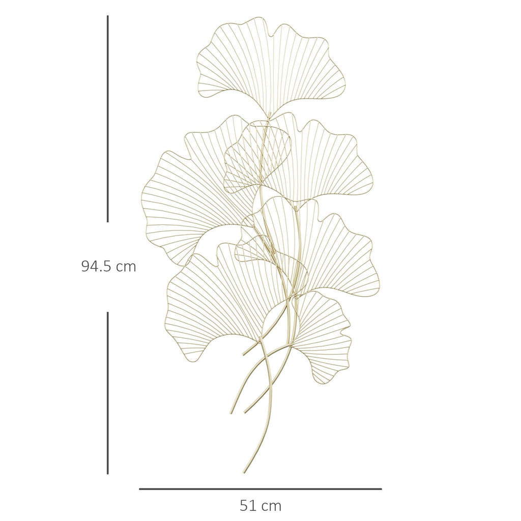 Décoration Murale 3D 51x94,5 cm en Métal Feuille de Ginkgo Doré