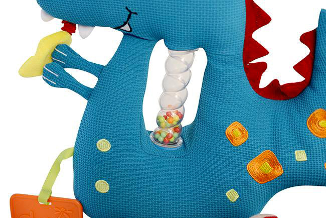 Dino est la première introduction de l'enfant à de merveilleuses activités sonores pendant le jeu ! Le hochet en cascade dans son ventre, la feuille à tirer pour ressentir une sensation de vibration, les grincements, les hochets et l'anneau de dentition contribuent au développement de l'apprentissage par le jeu et l'amusement sans fin.