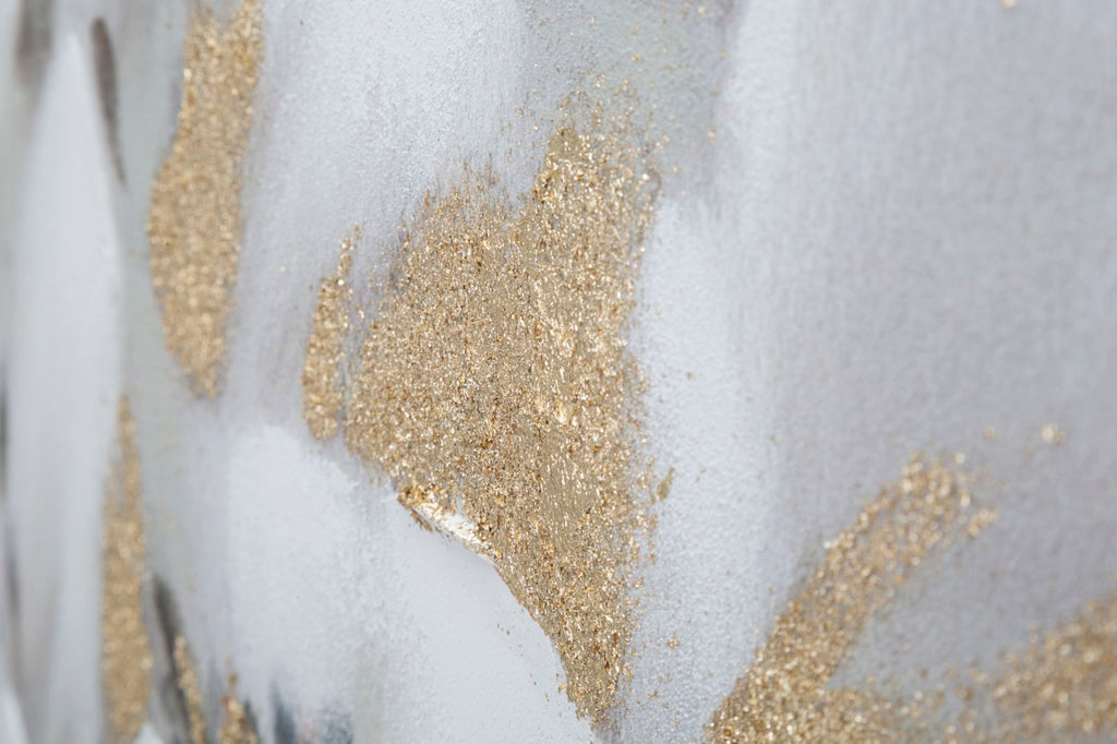 Peinture sur Toile Fleur Blanc/Or 80x3,7x100 cm en Bois de Pin et Toile Multicolore