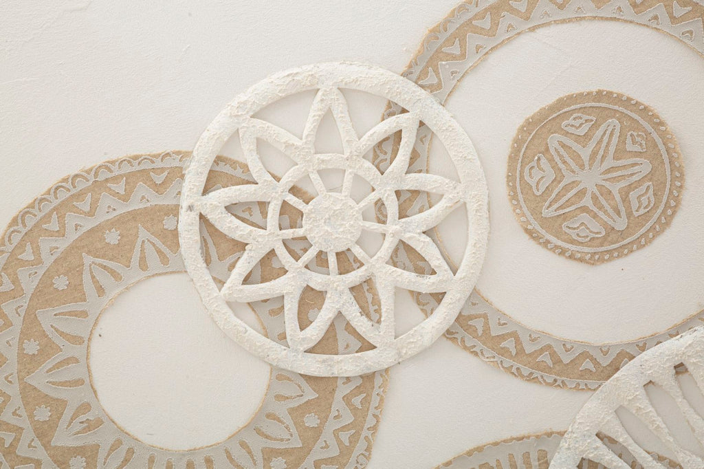 - Caratteristiche tecniche: dipinto su tela, completo di telaio, decorazioni in rilievo, motivi geometrici