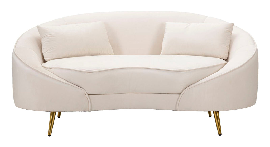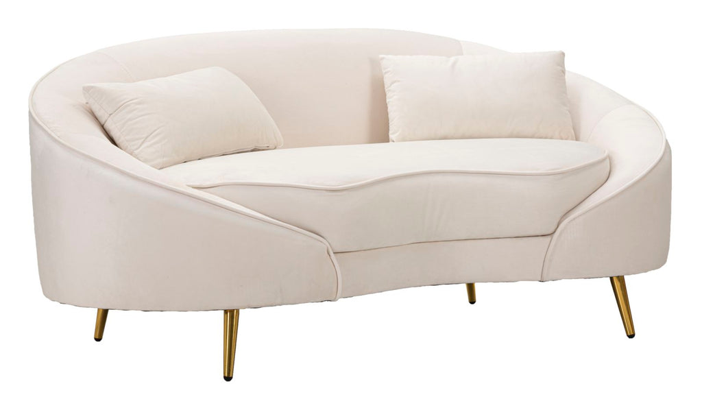 Le canapé 2 places en tissu rembourré beige offre une solution élégante pour meubler votre salon. Ses lignes douces et enveloppantes créent un environnement accueillant et confortable pour se détendre après une longue journée. Les pieds en métal doré donnent une touche de classe et de luminosité à la pièce. Complétée par 2 coussins, cette causeuse deviendra le point central de tout espace de vie.