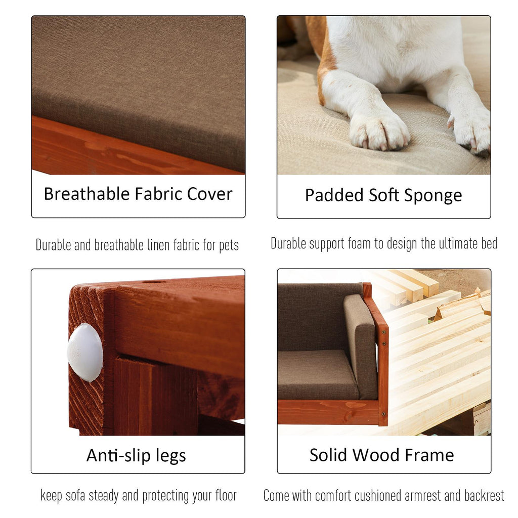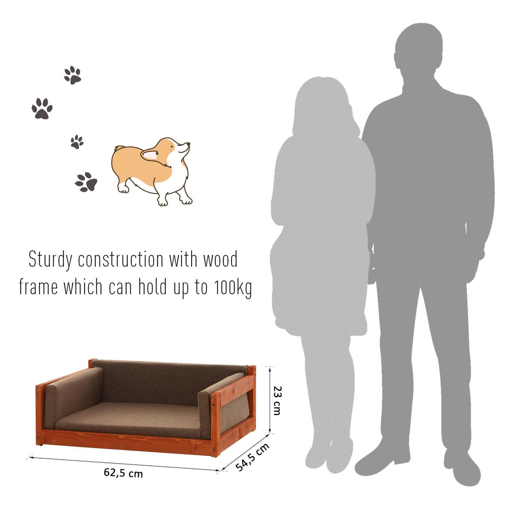 Canapé pour chiens et chats 62,5x54,5x23 cm en bois avec coussins Oklahoma
