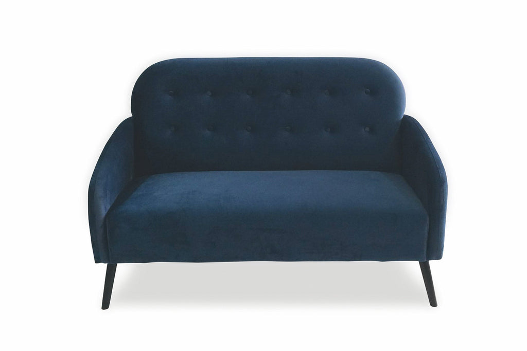 Canapé 136x70x90 cm en bois et tissu effet velours bleu