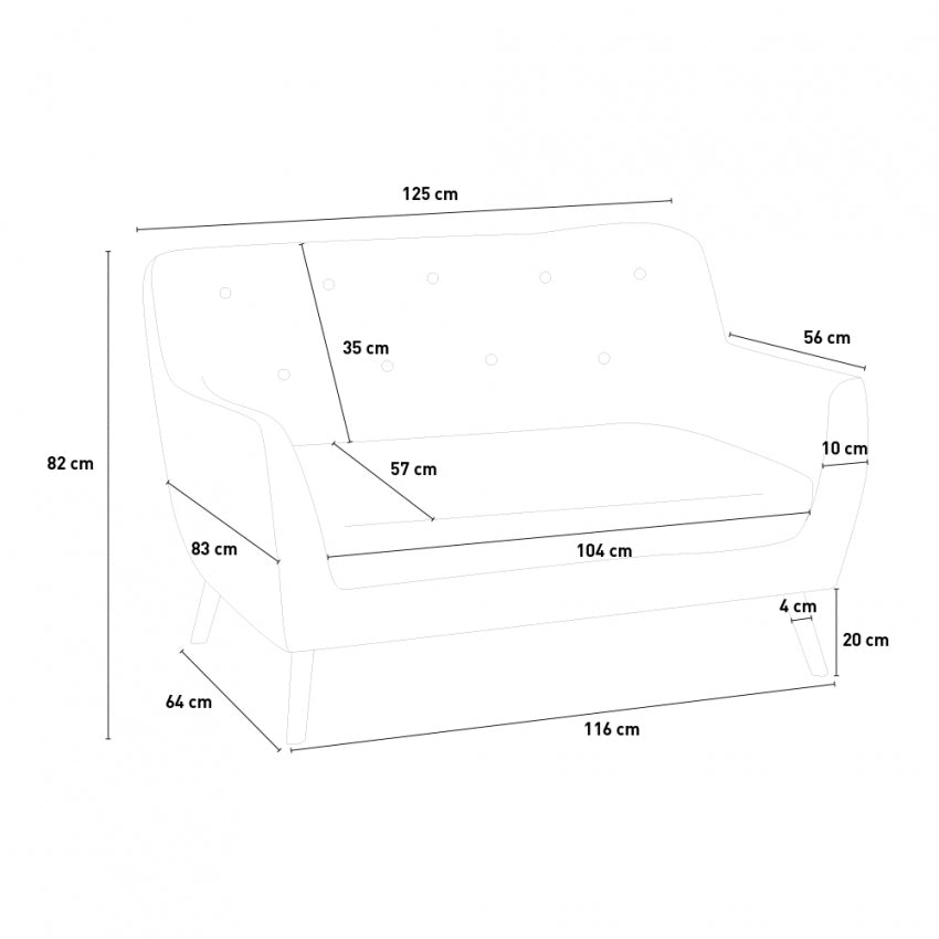 La structure portante, ainsi que les pieds, sont en bois de hêtre massif ce qui rend le canapé Irvine robuste et résistant. Le dossier est large et enveloppant et offre une assise confortable et détendue pour 2 personnes, grâce également aux accoudoirs et au coussin moelleux supplémentaire qui invitent immédiatement à s'asseoir. Le rembourrage du canapé est en mousse souple pour offrir le plus grand confort possible, tandis que le revêtement en tissu amovible est disponible en différentes nuances pour mettre en valeur chaque coin de la maison avec style et couleur. En plus d'être tendance, le canapé Irvine s'adapte à tout type d'intérieur et de contexte d'ameublement, en conservant toujours l'idée d'allier confort et beauté : l'association du bois clair et du tissu de qualité offre un résultat naturel et riche de charme qui résistera l'épreuve du temps sans se démoder.