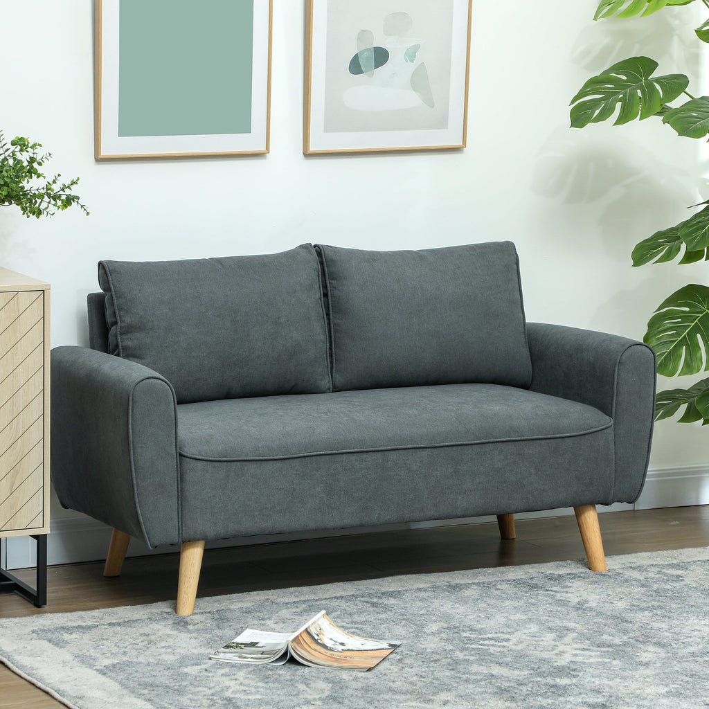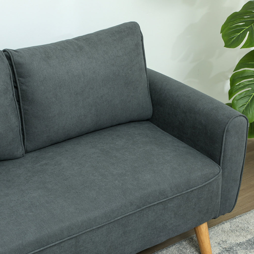 Divano 2 Posti 145x75x78 cm con Cuscini per Schienale in Tessuto Effetto Lino Grigio
