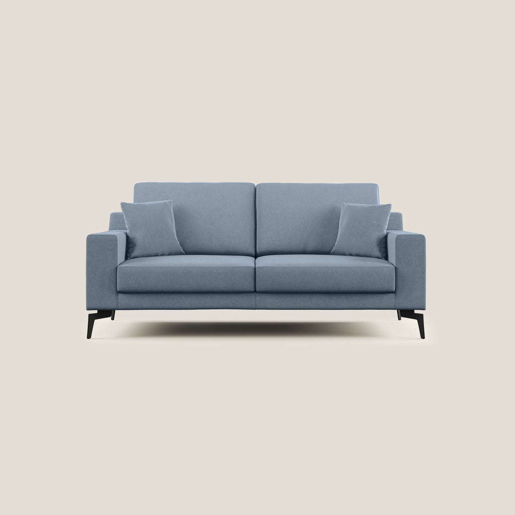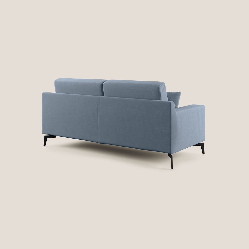Le canapé linéaire est réalisé en microfibre technique, ce qui le rend résistant aux taches et imperméable. Grâce aux pieds en acier de couleur anthracite, d'une hauteur de 17 cm, et à la hauteur des coussins d'assise, le canapé véhicule une image d'extrême élégance et d'équilibre formel. Disponible en différentes tailles et couleurs, ce canapé made in Italy est agrémenté d'un savoir-faire raffiné et de revêtements qui ajoutent des détails « haute couture » raffinés. Les matériaux de qualité, choisis dans le respect de l'environnement, ainsi que les coutures lors de la phase de couture, contribuent à faire du canapé un élément précieux au sein de l'espace de vie. Le revêtement entièrement déhoussable du canapé et la haute densité des matériaux de l'assise et du dossier améliorent ses caractéristiques et sa qualité. En résumé, le canapé allie élégance, fonctionnalité et qualité.