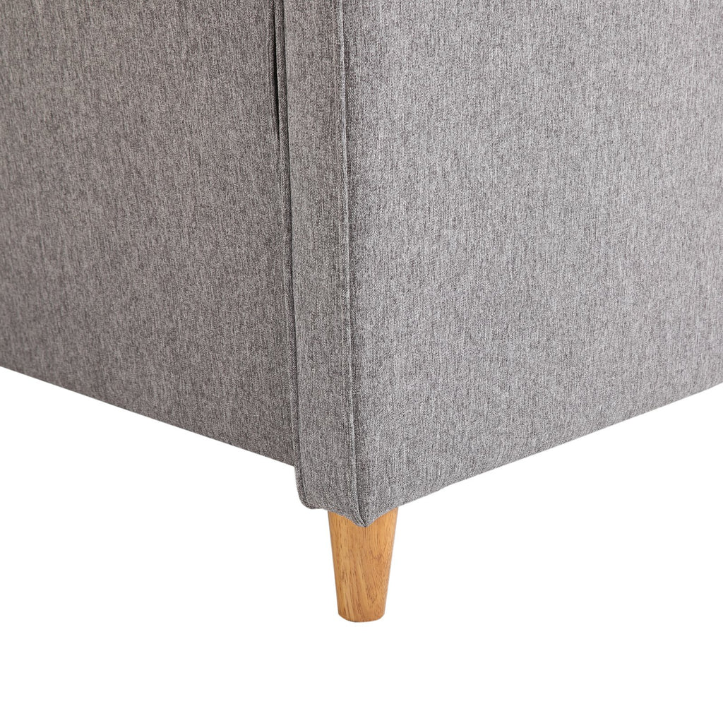 Recouvert de lin gris doux, il possède deux coussins pour l'assise et deux pour le dossier, parfaits pour passer de longues heures assis en toute tranquillité.