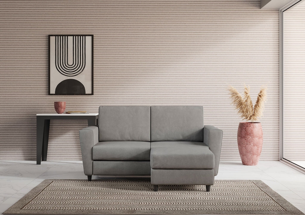 Canapé 2 places avec pouf 172x145x85 cm Yasel en tissu gris