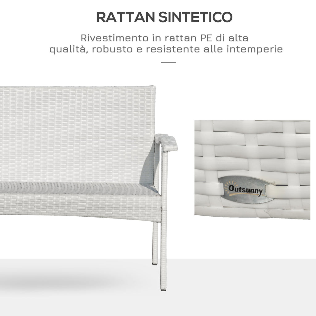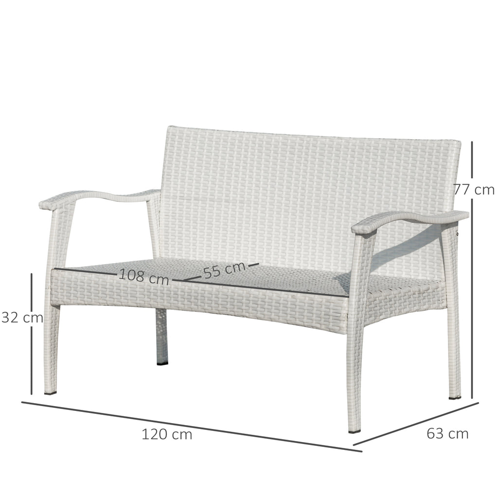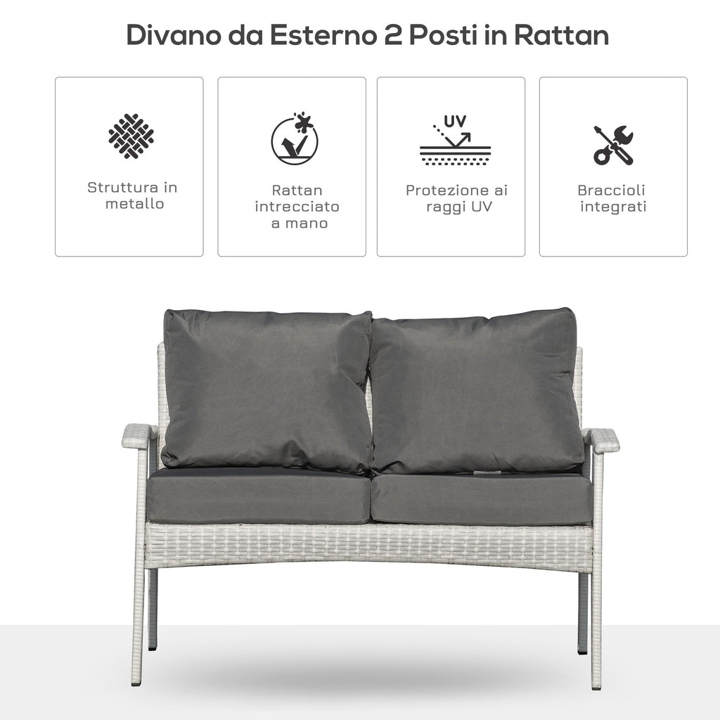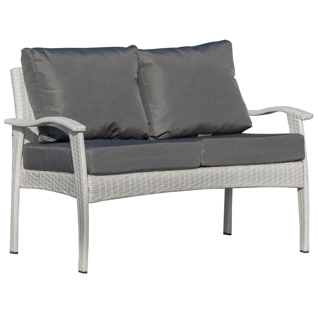 Canapé de jardin 2 places 120x63x77 cm en rotin avec coussins blancs et gris