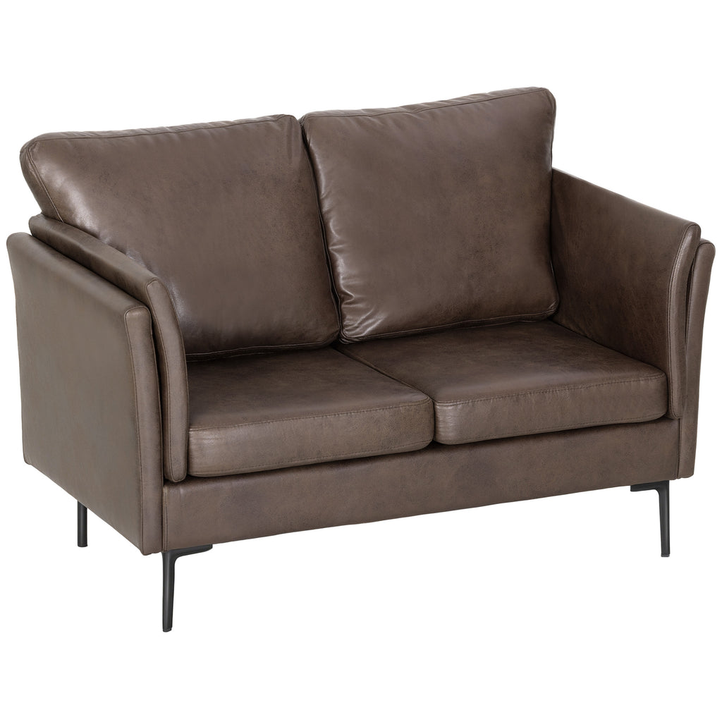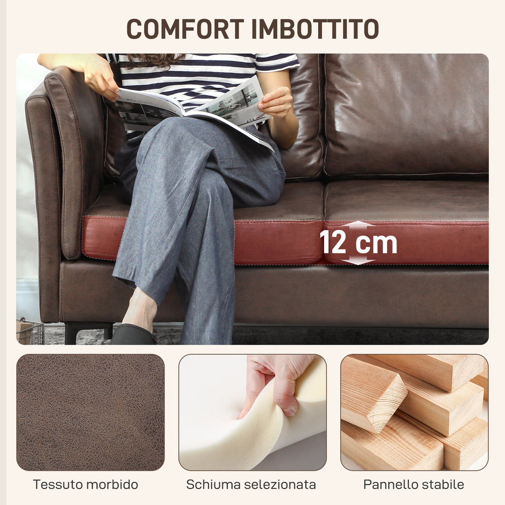 Divano 2 Posti Design Minimal 137x72x88 cm con Imbottitura Spessa in Poliestere Effetto Pelle Marrone Scuro