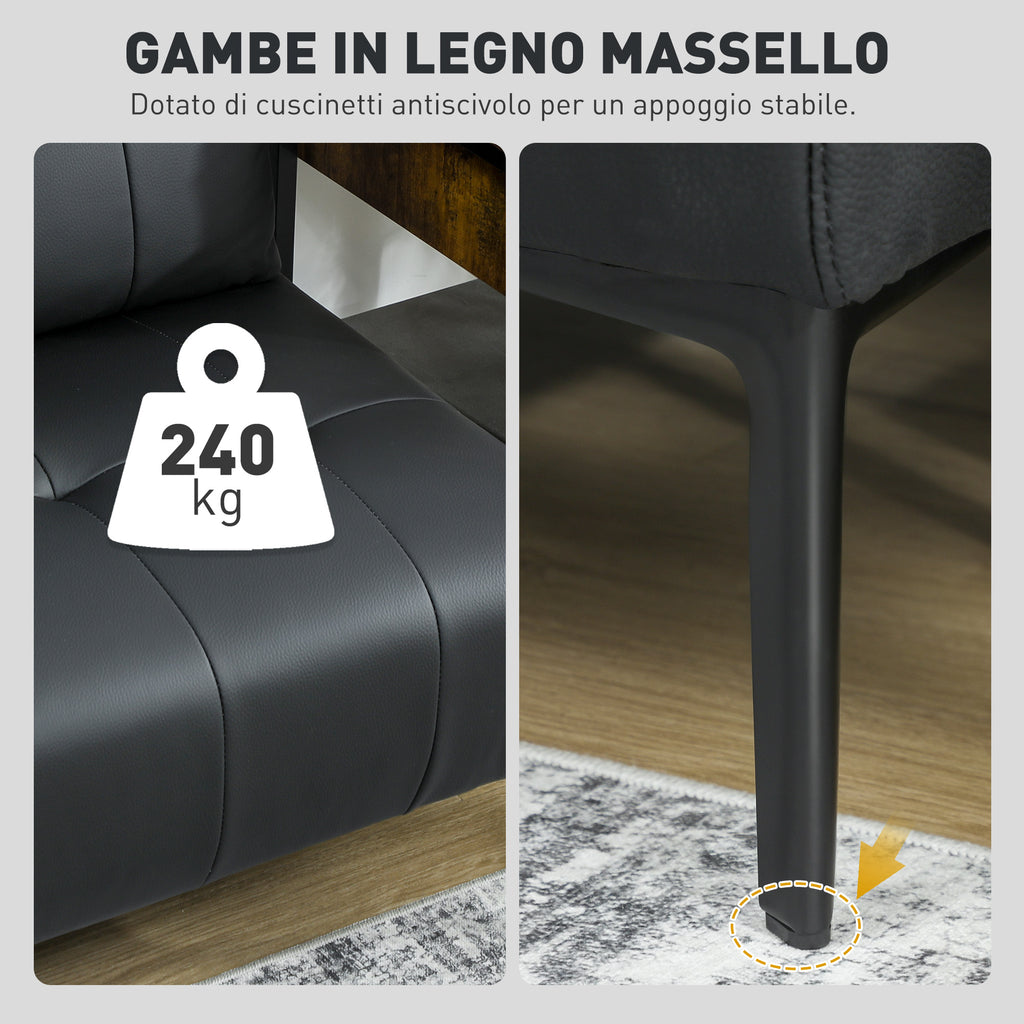 Divano 2 Posti Design Moderno 115x73x83 cm Senza Braccioli e Trapuntato in Finta Pelle Nero