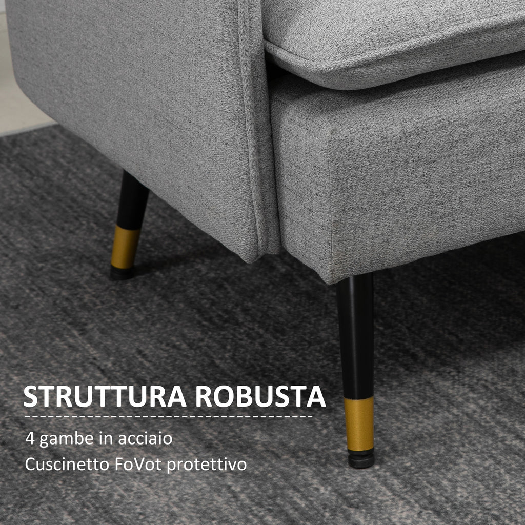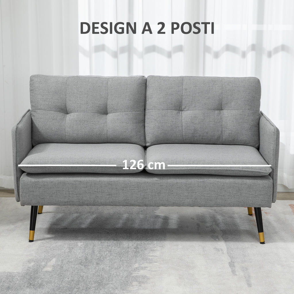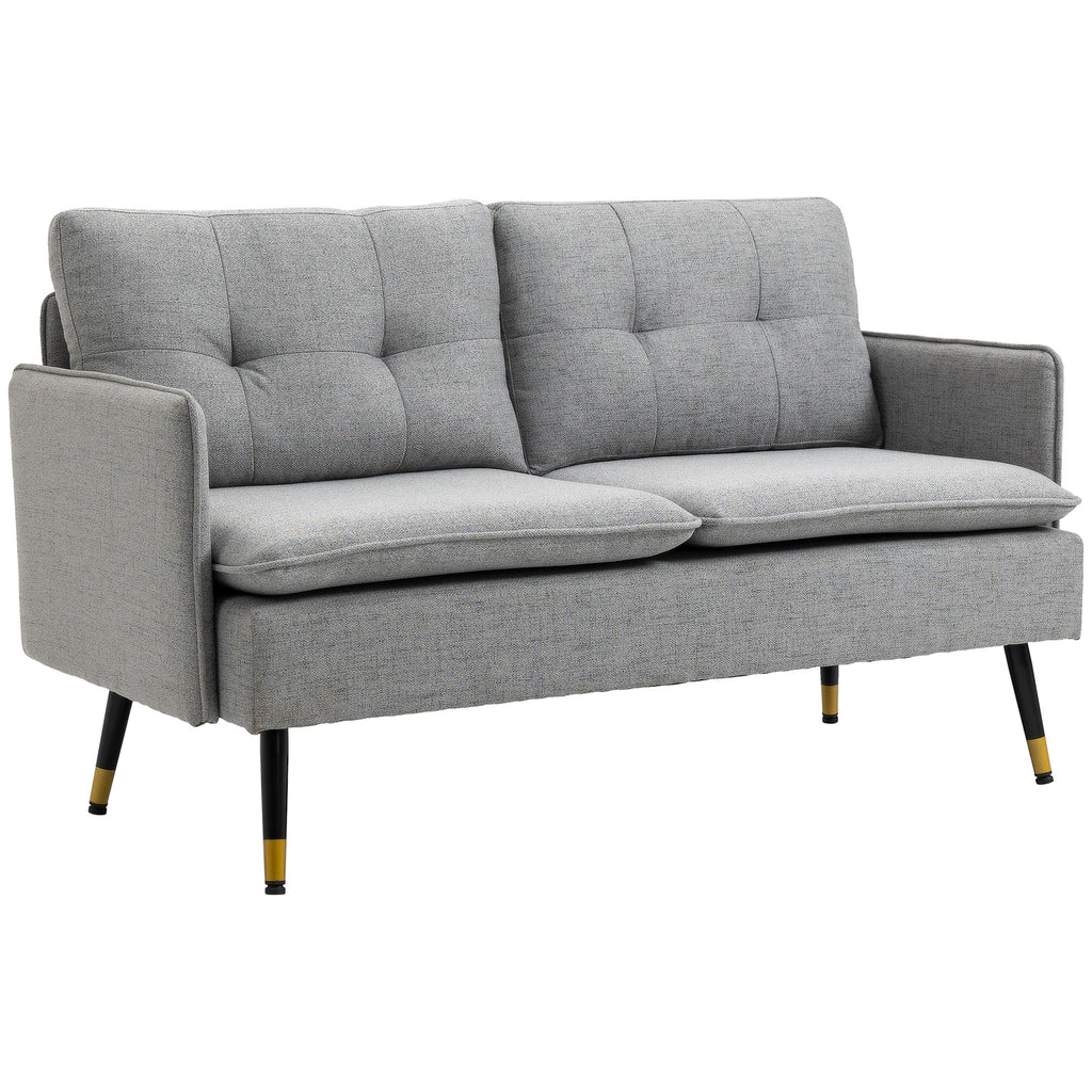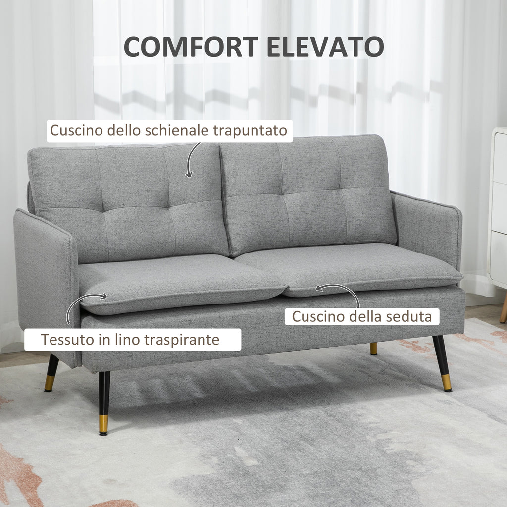 Divano 2 Posti in Tessuto 139x68x80 cm con Cuscini Imbottiti e Gambe in Acciaio Grigio