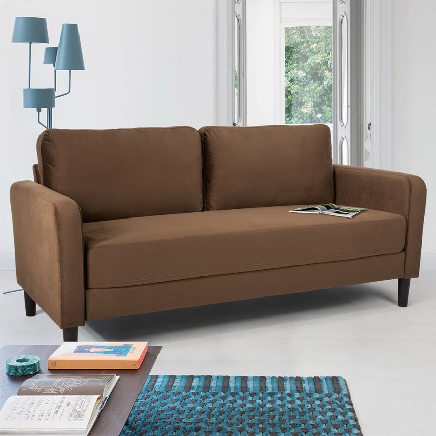 Le canapé Portland est l'un des modèles les plus adaptés de la marque Modus Sofa pour les moments de détente de tous les jours et le plus adapté si vous souhaitez meubler le salon avec une touche de style sans sacrifier l'espace. En effet, ses dimensions permettent de meubler très facilement tout type d'environnement, même les plus petits, aussi bien domestiques que professionnels, naturellement adaptés au salon mais aussi dans une salle d'attente ou une chambre d'amis, s'intégrant parfaitement dans un ameublement moderne. Le siège unique, accueillant et généreusement rembourré, accueille confortablement 3 personnes et les deux coussins moelleux qui accompagnent le dossier garantissent des heures et des heures de confort devant la télé ou lors de conversations en compagnie d'amis et de famille. Le cadre est en bois massif afin de pouvoir supporter une charge plus importante et est recouvert d'un tissu de premier choix et agréable au toucher qui s'harmonise avec toutes les combinaisons de couleurs disponibles. Enfin, la structure portante est surélevée du sol par les pieds profilés résistants, qui en plus de rendre le canapé encore plus stable, lui donnent une touche supplémentaire d'originalité.