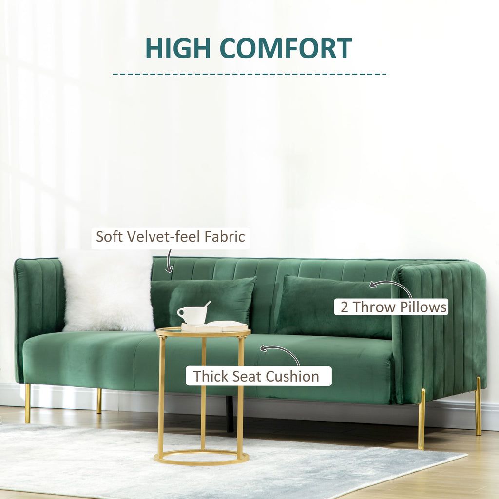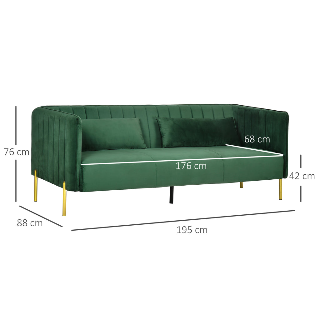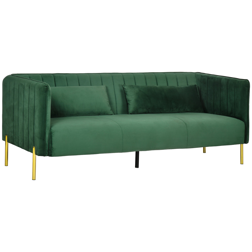 Canapé 3 places 195x88x76 cm en acier et tissu velours vert