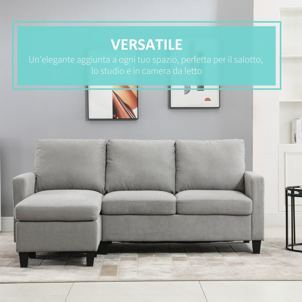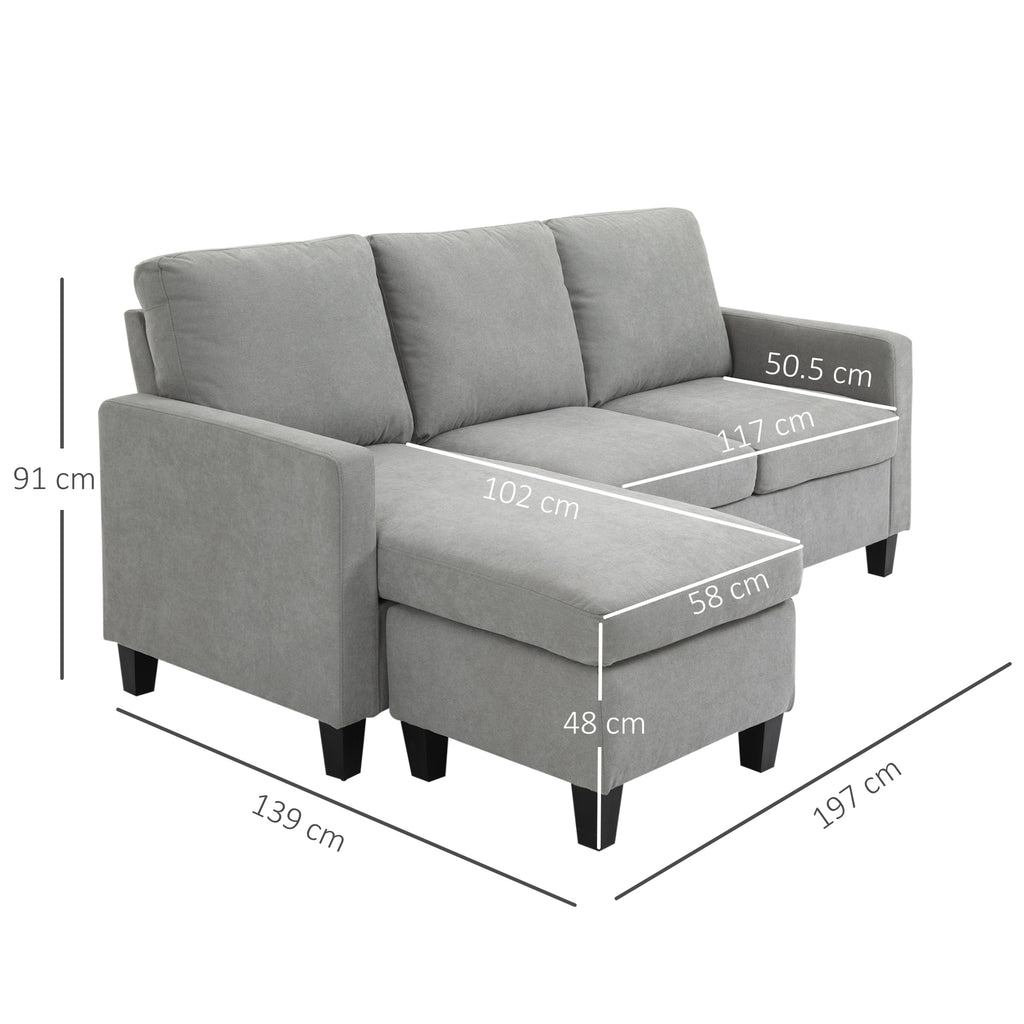 Canapé 3 places 197x139x91 cm avec péninsule réversible en tissu gris