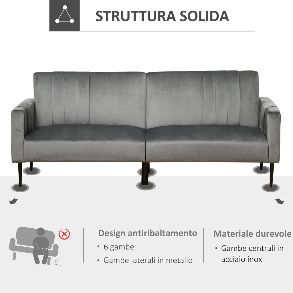 Canapé 3 places 203x84x83 cm en velours gris foncé