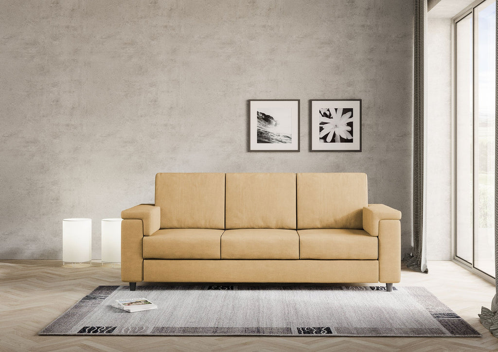 Divano 3 Posti 208x85x85 cm Marrak in Tessuto Ocra