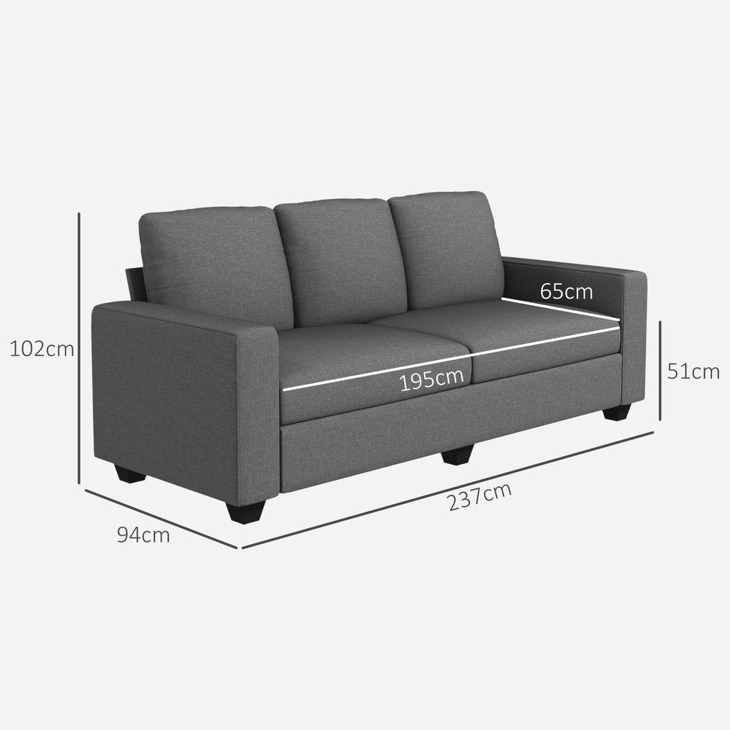 Divano 3 Posti 237x94x102 cm con Cuscini Rivestimento Effetto Lino Grigio
