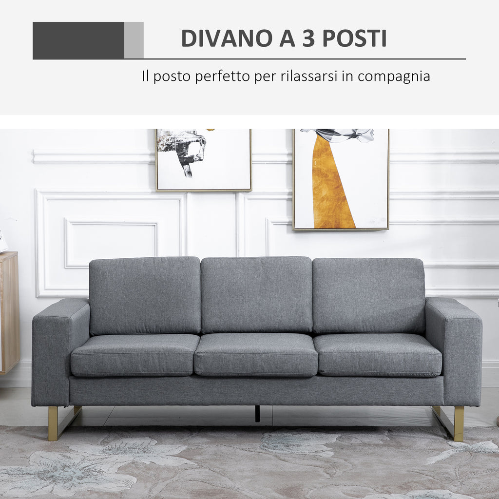 Canapé 3 places avec coussins en tissu lin gris foncé 200x82x78 cm