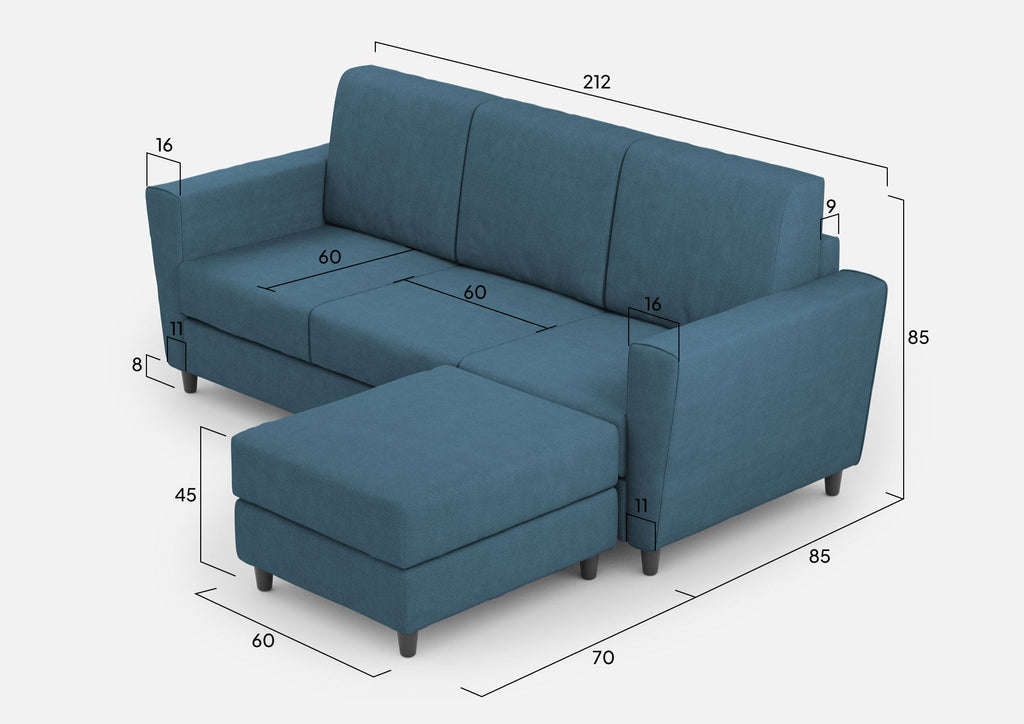 Canapé 3 places avec pouf 212x155x85 cm Yasel en tissu Avio
