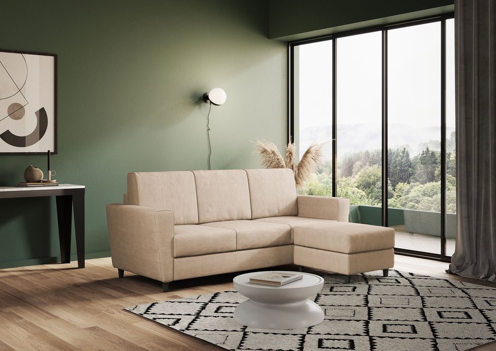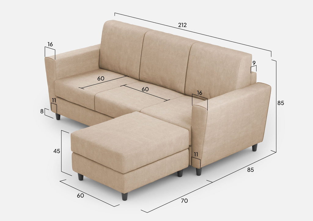 Canapé 3 places avec pouf 212x155x85 cm Yasel en tissu beige