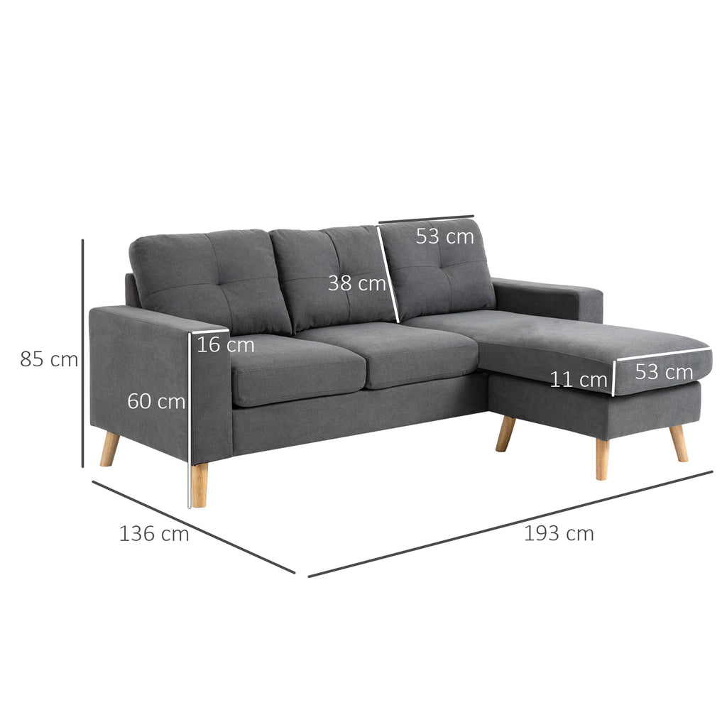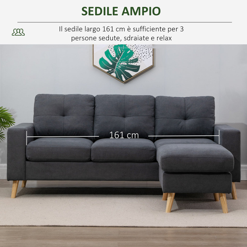 Canapé d'angle 3 places en lin avec péninsule grise