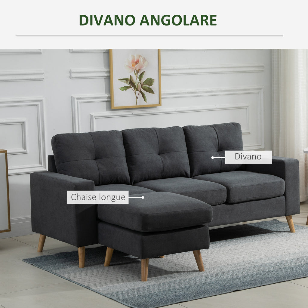 Canapé d'angle 3 places en lin et péninsule grise