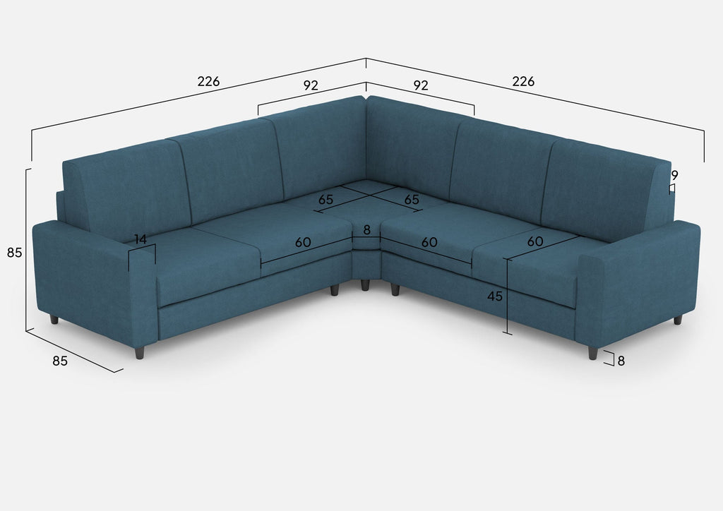 Divano Angolare 5 Posti 226x226x85 cm Sakar in Tessuto Avio
