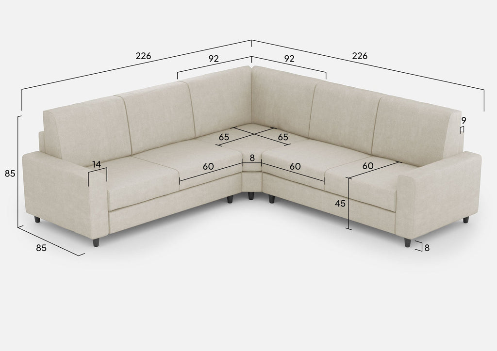 Divano Angolare 5 Posti 226x226x85 cm Sakar in Tessuto Latte