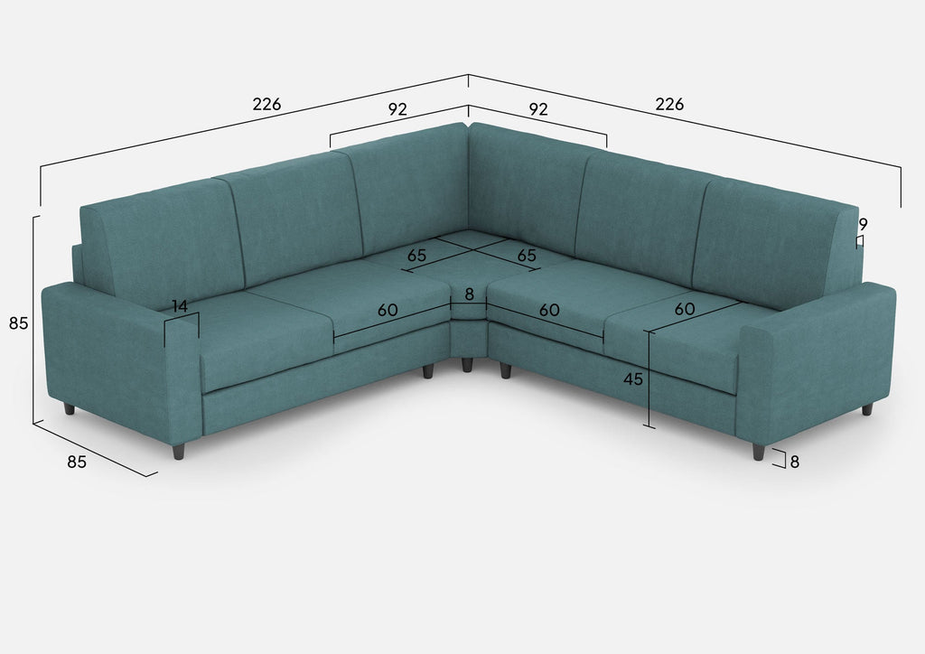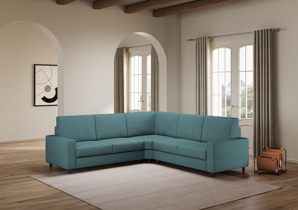 Divano Angolare 5 Posti 226x226x85 cm Sakar in Tessuto Petrolio