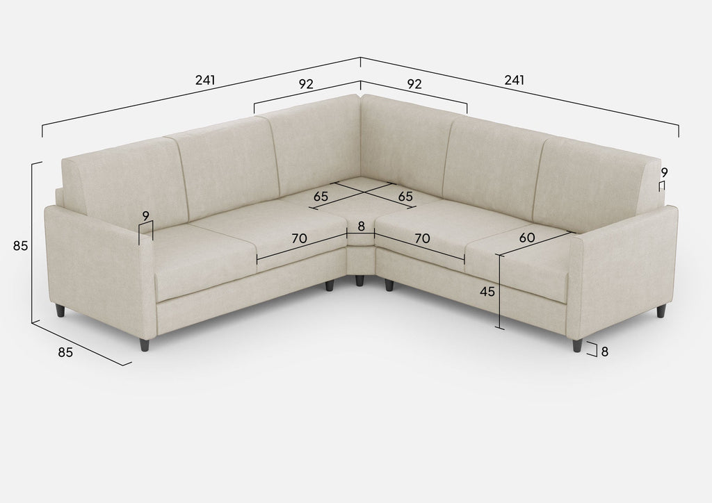 Canapé d'angle Karay 5 places 241x241x85 cm en tissu lait