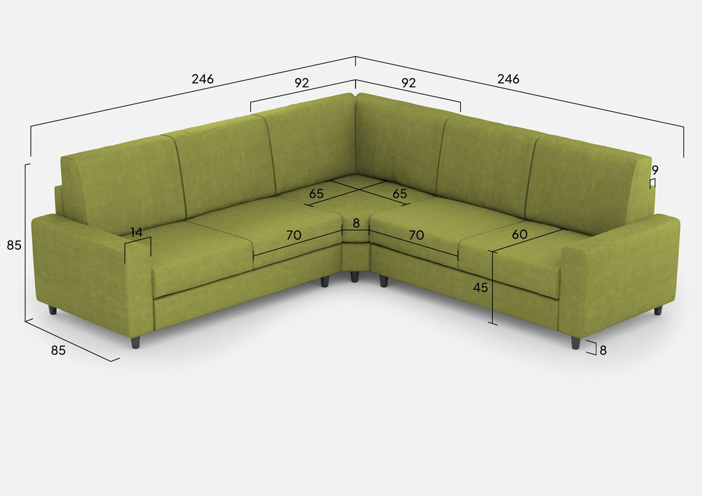 Canapé d'angle Sakar 5 places 246x246x85 cm en tissu vert