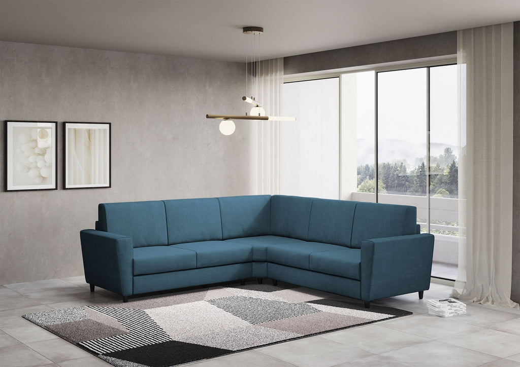 Canapé d'angle Yasel 5 places 248x248x85 cm en tissu Avio
